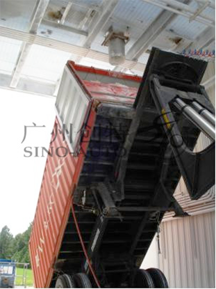 用液壓翻轉(zhuǎn)裝置把集裝箱豎起來, 從頂部充填。