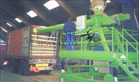通過筒倉內(nèi)物料的重力加速度,把集裝箱填滿。10分鐘內(nèi)裝好一車,約25噸,效率極高。